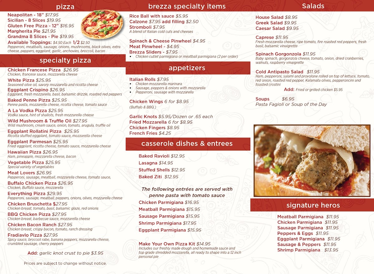 Brezza Pizza Kitchen Menu (2025 Update)